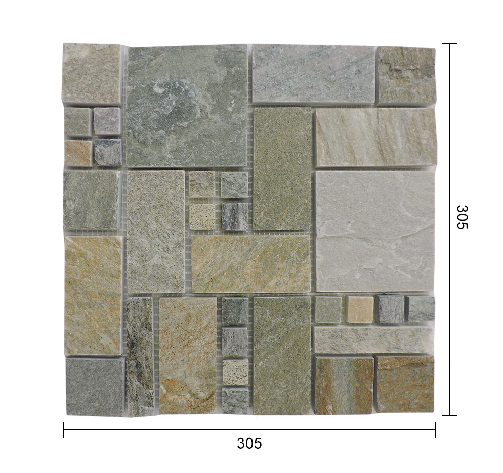 Mosaic is made of natural slate without any harmful substance, even in the process, no harmful substance is added. In modern times, green and environmental protection building materials are highly needed, natural slate made mosaic can meet all these demands. It is your best choice to decorate your houses/buildings.