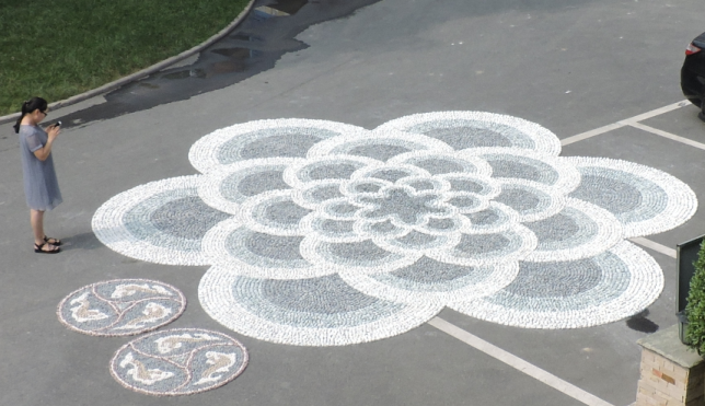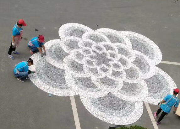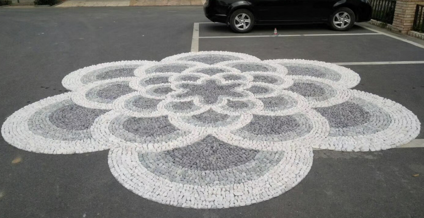 今天客戶定制的卵石拼花完工,太漂亮了。我給大家?guī)?lái)兩張照片,一起欣賞一下。