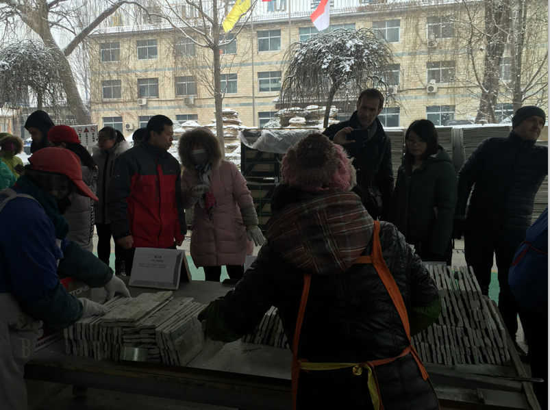 2018年1月22上午,在公司領導的陪同下,來自法國安達屋超市的客戶到我公司進行參觀、考察、商務洽談,期間公司領導向外國客戶詳細介紹了龍山石材有限公司發展歷史及我公司的制造工藝。
