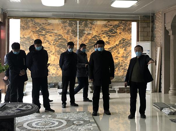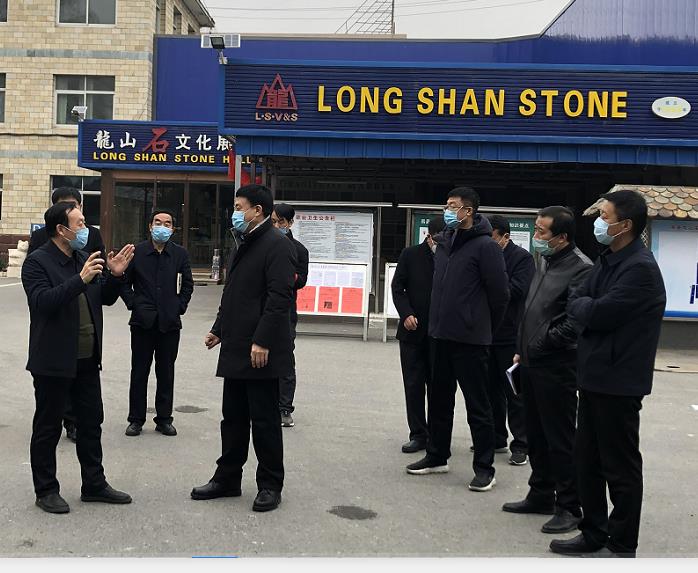 2月26日上午,保定市人大常委會副主任、易縣縣委書記楊義寶、宣傳部部長霍玉鵬、經濟開發區主任武永勝、環保局局長劉建華、工信局岳金利書記及高村鎮書記石平造等一行人,到我公司復產復工的情況進行督導檢查,龍山石材總經理耿立新全程陪同。