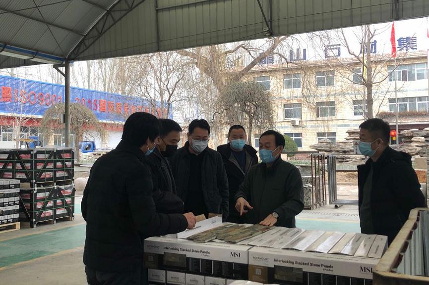 3月2日,保定市商務(wù)局劉局長、易縣商務(wù)局陳局長一行7人到龍山石材進(jìn)行調(diào)研,通過實地參觀、聽取匯報等形式了解龍山石材在防疫、生產(chǎn)兩不誤情況下的出口行情。龍山石材總經(jīng)理耿立新全程陪同。