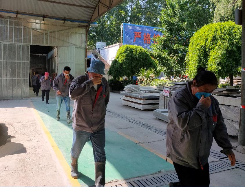 圖為員工消防通道逃生實(shí)地演習(xí)