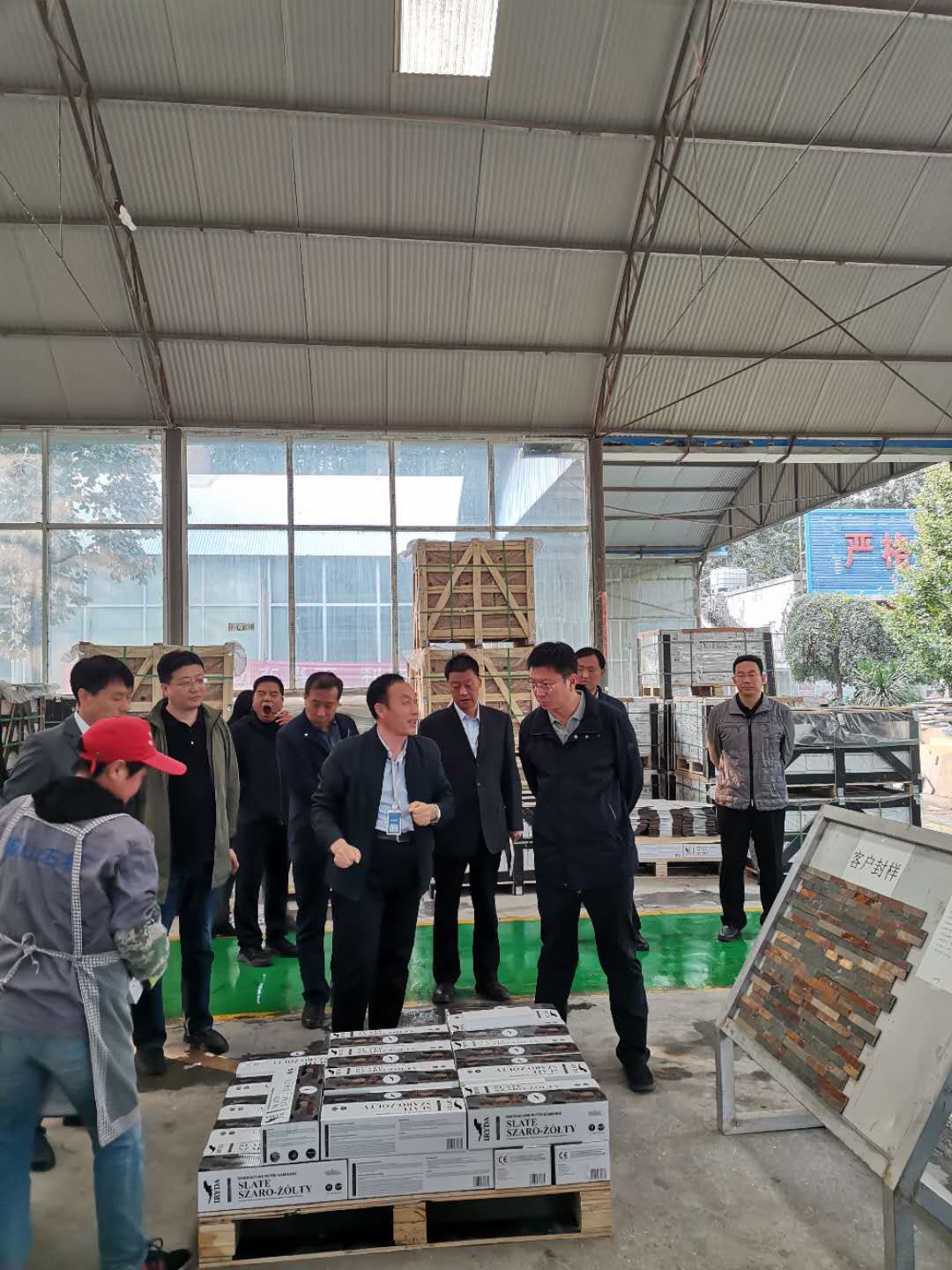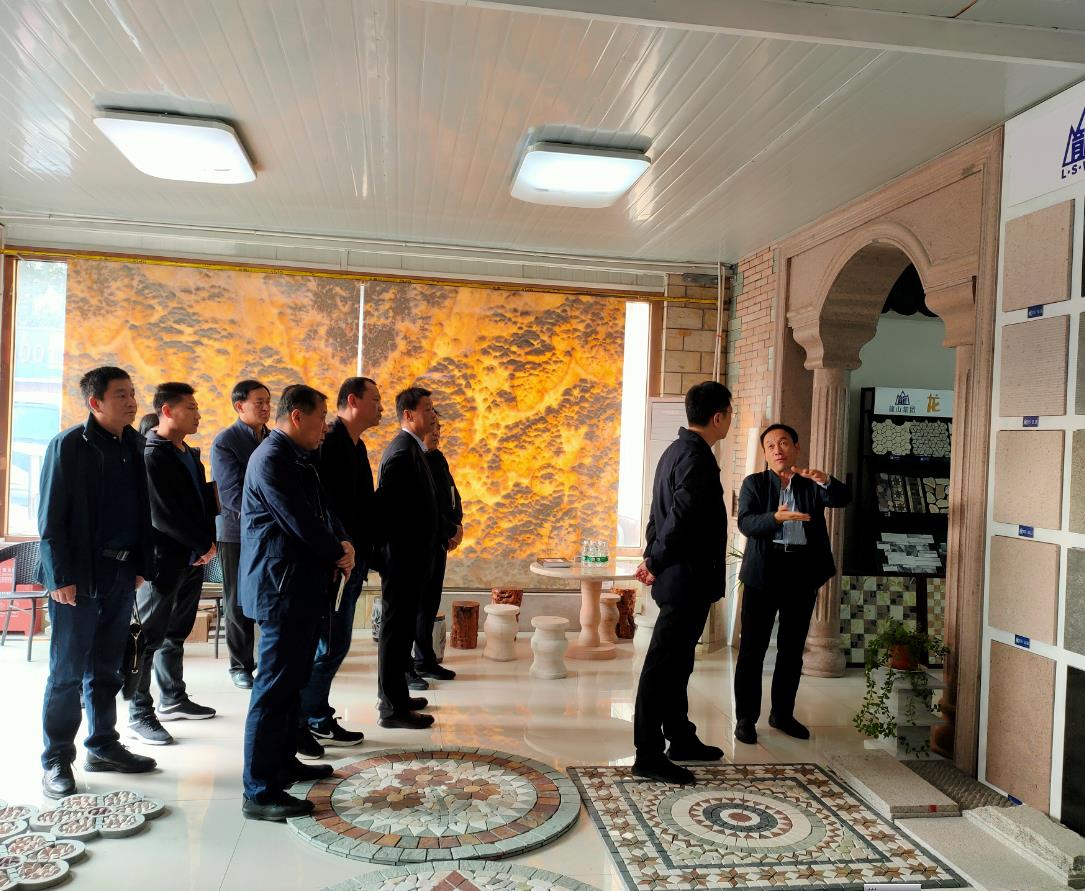 張縣長一行來到龍山石材展廳,耿經理為張縣長一行人詳細介紹了企業主營業務、主要產品等概況,并重點講述了易縣的“三塊名石”。首先是“中華第一石”——易縣紅花崗巖,一九九九年50年祖國大慶時用于天安門廣場;接著是二零零八年的奧運鳥巢指定用綠色石材——青木紋板巖;最后是我們的石材未來之星——易縣灰麻,被指定用于雄安的新建設中。