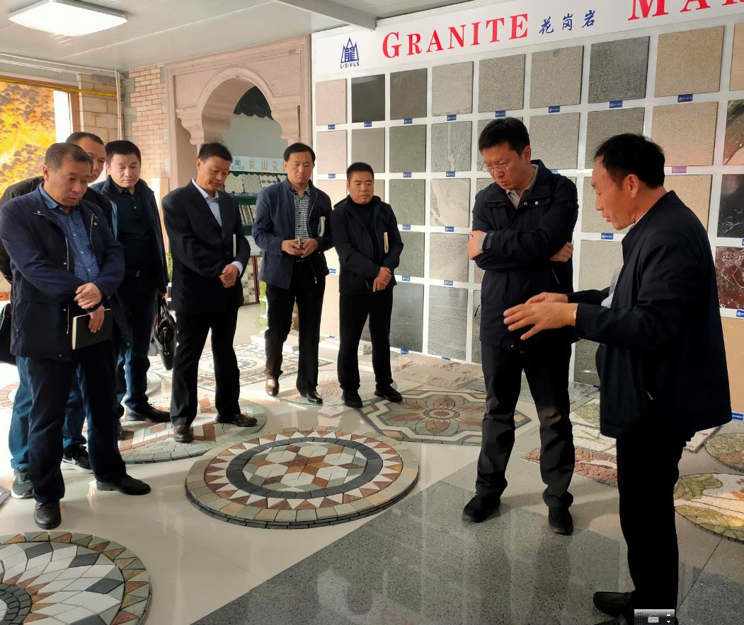 10月15日下午,易縣新任縣長張銳深入龍山石材進行實地調研。縣工信局苑局長、經濟工發區武主任、高村鎮石書記、王鎮長等主要負責同志陪同調研,龍山石材總經理耿立新全程接待。
