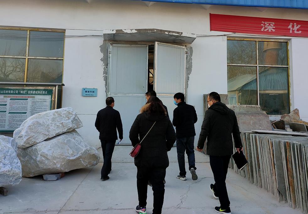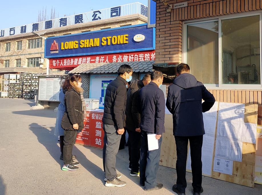 2021年1月11日,縣政府武縣長、工信局岳局長一行三人來龍山公司檢查疫情防控情況。龍山石材張義文經理陪同領導到生產車間進行現場檢查。