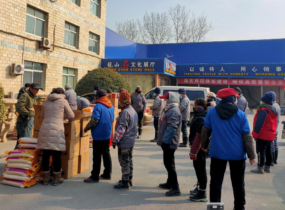 2021年1月31日上午,在龍山石材辦公室的組織下,將公司精心準備的新年福利送給全體員工,從全體員工笑開的臉上不難看出個個心里都美滋滋的,從一句句感謝的話語中,也能看出全體員工的感激之情。希望大家都過一個平安順遂年。
