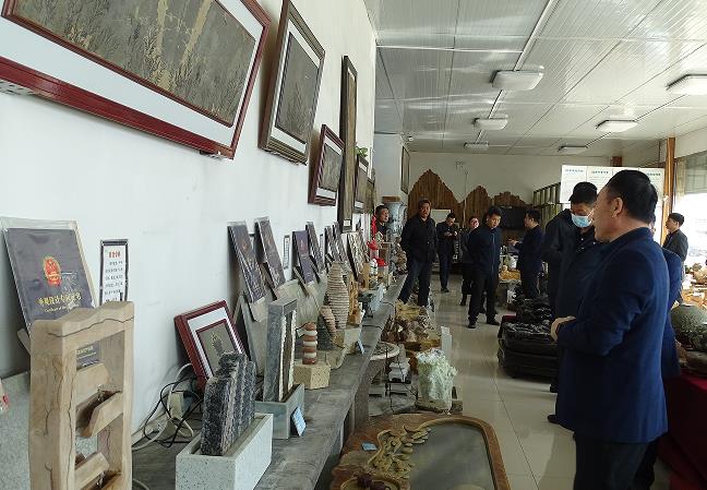 接著耿總帶各位領(lǐng)導(dǎo)到龍山石材展廳參觀。耿總將易縣的花崗巖系列及文化石系列產(chǎn)品進行了詳細解說,并重點介紹了我們自主研發(fā)的美泉石加濕器。袁主席一行對龍山的產(chǎn)品有極高的興趣,并就生產(chǎn)及銷售等環(huán)節(jié)進行了詢問。耿總就客人提出的問題也一一做了具體解答。