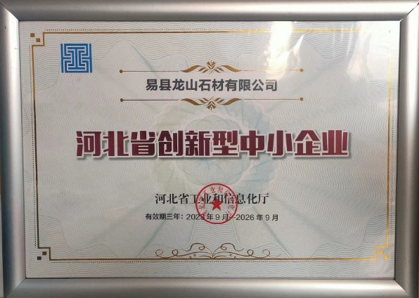 河北省經濟和信息化局公示了新一批“河北省創新型中小企業”名單,易縣龍山石材有限公司成功通過相關主管部門評價、認定工作,榮獲“河北省創新型中小企業”稱號。