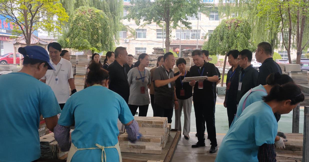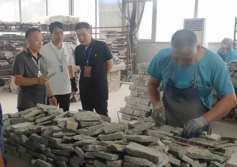 2025年7月24日上午,易縣人大常委會副主任馮振斌率隊深入龍山石材開展實地調研,縣環保局高局長等相關負責人陪同考察。龍山石材總經理耿立新全程熱情接待,雙方圍繞企業生產工藝創新、環保治理成效及可持續發展路徑展開深入交流。
